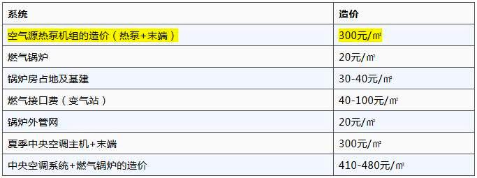 因此,空氣源熱泵供暖制冷系統(tǒng)的造價比中央空調+燃氣鍋爐系統(tǒng)的造價低110-180元/㎡.