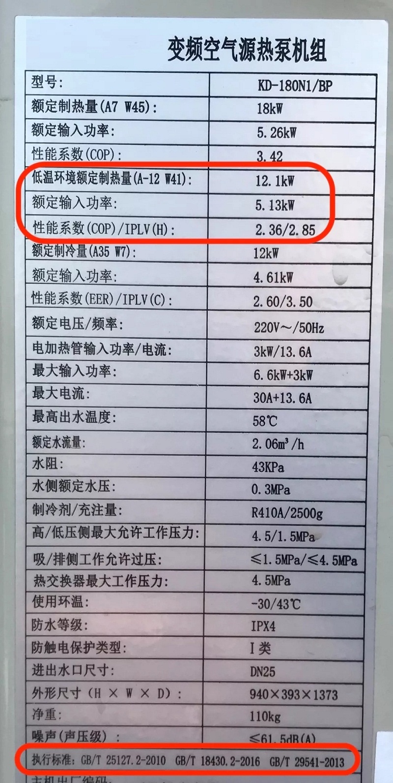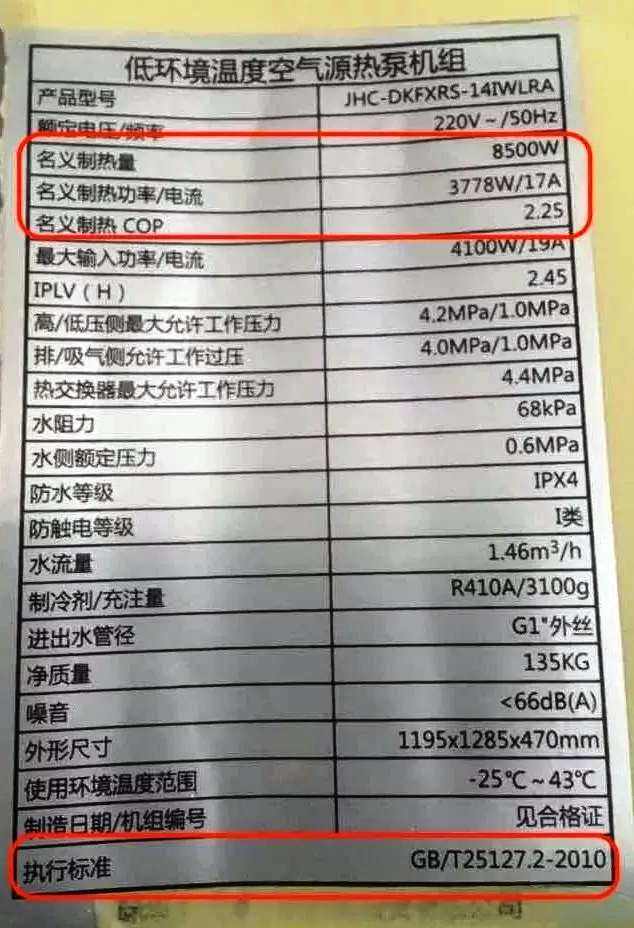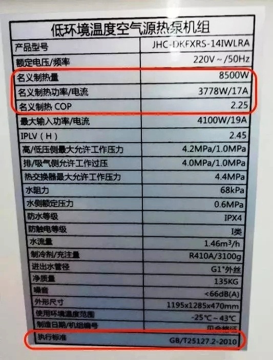奉勸經(jīng)銷商或消費者在選用產(chǎn)品時,注意銘牌的參數(shù),標明低溫工況制熱量的,一般是空氣源熱泵采暖機組或低溫型的空氣源兩聯(lián)供機組。選擇熱泵類型非常重要,有的工程由于將熱泵類型選錯,造成長期壓縮機工作不停機,運行費用高但室內溫度難以滿足設計要求。