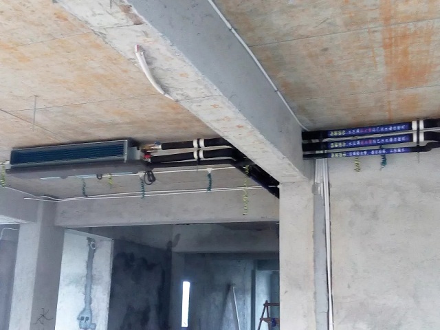 空調制冷:夏季采用家庭中央空調系統,制冷時,控制主機通過冷熱水管連接多個末端出風口,將冷暖氣送到不同區域,來實現室內空氣調節。此系統使用檔次高、外形好、舒適度強,可實現美觀典雅和舒適衛生的和諧統一,是國際和國內的發展潮流。本系統采用風機盤管制冷,客廳、餐廳、休閑區、臥室、書房等區域設置風機盤管。