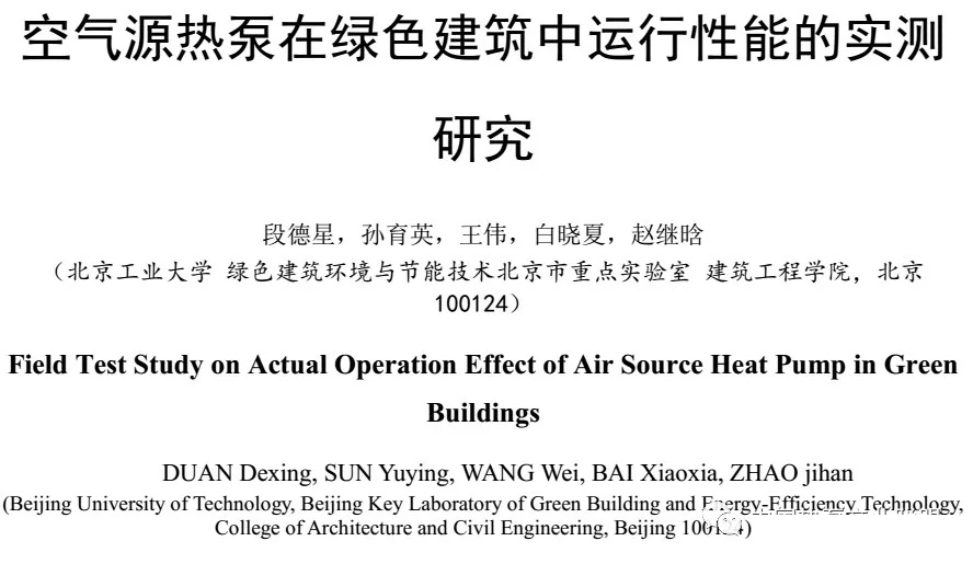 關鍵詞:空氣源熱泵;綠色建筑;現場測試;實際運行性能;共性問題