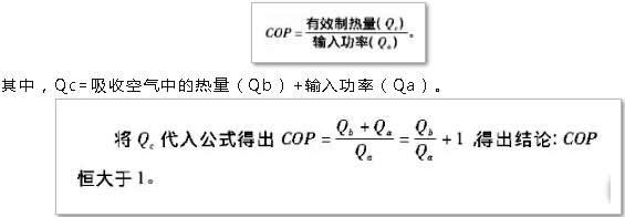 空氣作為可再生能源是取之不盡、用之不竭的天然資源。而熱泵技術(shù)是利用輸入少量的電能,從空氣中獲得高于輸入電能2倍~5倍的熱能來加熱被加熱對象,實現(xiàn)供熱的目的?諝庠礋岜霉ぷ髦形】諝庵械臒崃渴敲赓M的,而輸出的熱能是以它為主的,根據(jù)熱泵制熱性能系數(shù)公式: