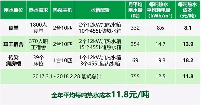 根據該人民醫院要求,分別對食堂、職工宿舍及傳染病房樓設置獨立的點對點的空氣源熱泵熱水系統,不改變原先的閉式供水系統形式,改造后的系統需完全滿足日常熱水需求,并留有設計余量。由于空氣源熱泵所具備的優勢和特性正好可滿足該要求,該人民醫院最終決定通過“節能效益分享型合同能源管理的模式”,對部分功能區(食堂、職工宿舍及傳染病房樓)實施了熱水系統改造,并選用了“5套10匹承壓式熱泵熱水系統”,分別供應醫院食堂、職工宿舍及傳染病房樓熱水,并簽訂了為期5年的節能效益分享型能源管理合同。