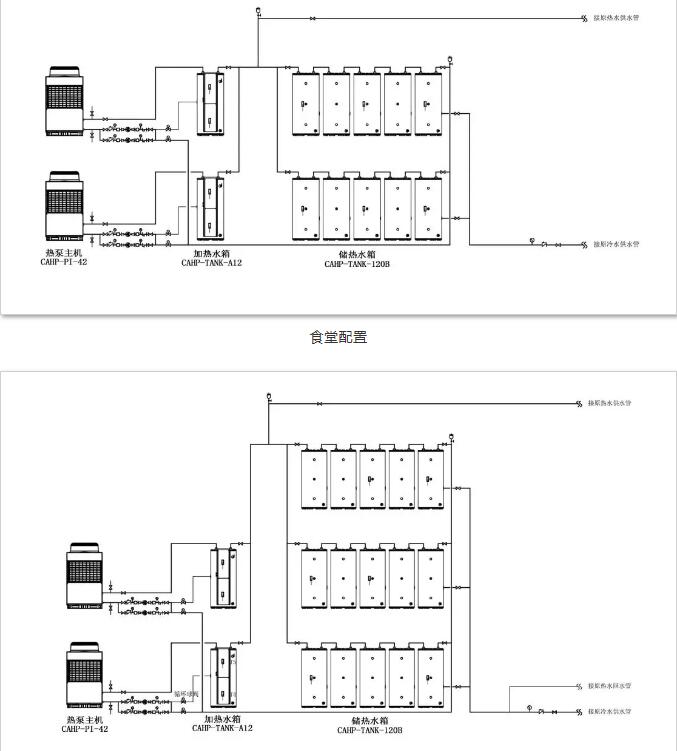 食堂:2臺10匹承壓式熱泵主機+2臺12kW