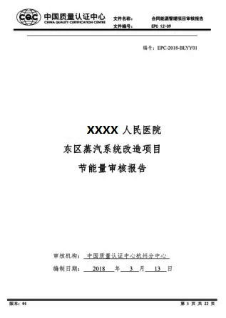 結合“中國質量認證中心”出具的《XXXX人民醫院東區蒸汽系統改造項目節能量審核報告》,按用能單位提供的項目改造前后設備能耗及雙方確認的能源價格,項目實施前年耗蒸汽量為3633.59t,折合325.74噸標準煤;項目實施后年節能量為278噸標準煤,年節能效益為57.4萬元。