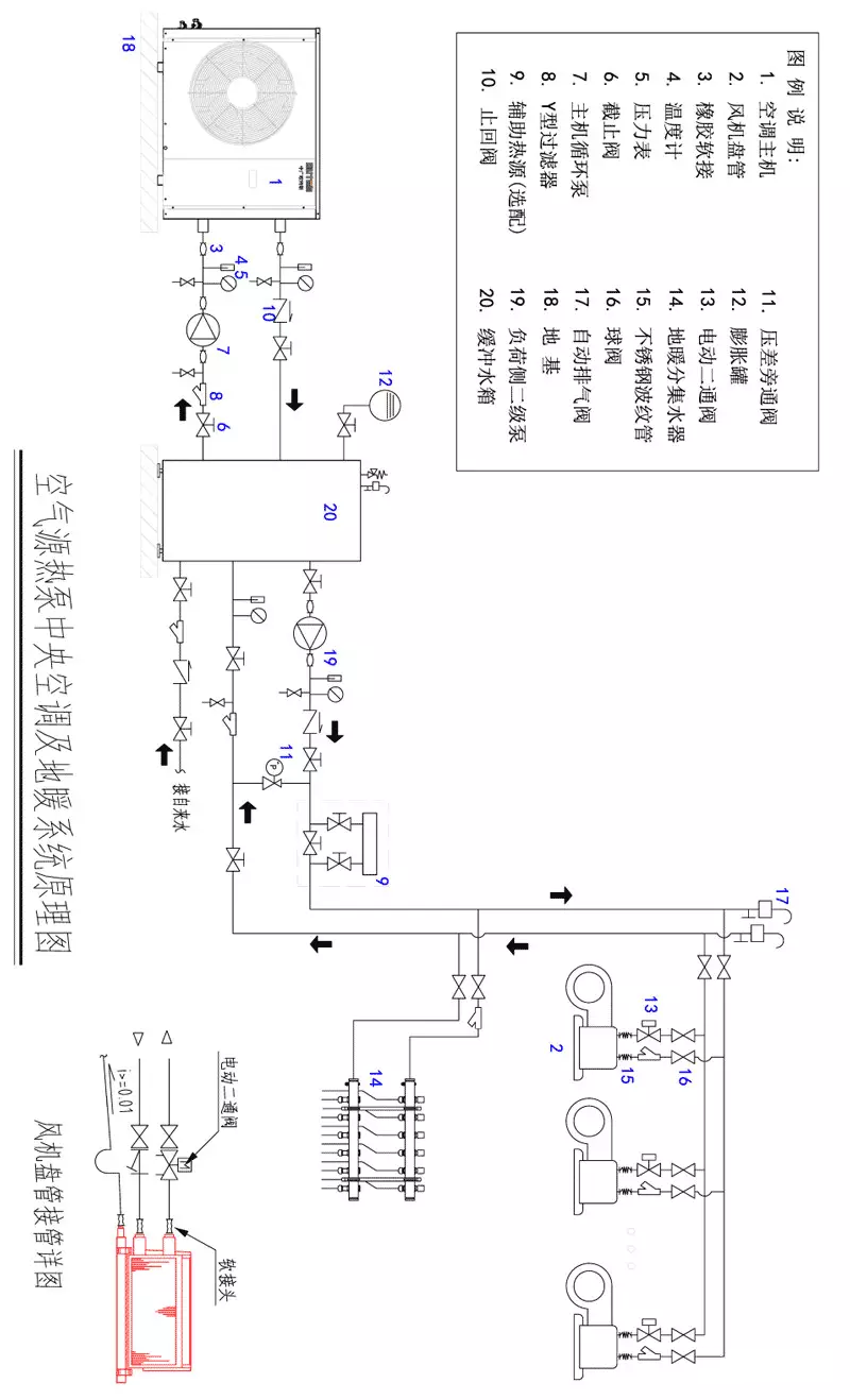 經(jīng)過大量理論和工程實踐可知,空氣源熱泵機組與低溫熱水地板輻射采暖末端系統(tǒng)是一種很好的組合方式。