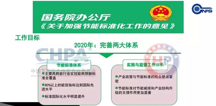 首先,向大家簡(jiǎn)要介紹一下我國標(biāo)準(zhǔn)標(biāo)識(shí)的概況。我國高度重視節(jié)能標(biāo)準(zhǔn)化工作,除《節(jié)能法》之外,很多政策文件都提到要加快制定能效和能耗限額標(biāo)準(zhǔn)。在2015年國務(wù)院辦公廳頒布的《關(guān)于加強(qiáng)節(jié)能標(biāo)準(zhǔn)化工作的意見》中提到,到2020年國家要完善兩大標(biāo)準(zhǔn)體系建設(shè):一是“節(jié)能標(biāo)準(zhǔn)體系”,提出主要高能耗行業(yè)實(shí)現(xiàn)能效限額標(biāo)準(zhǔn)全覆蓋,80%以上的能效指標(biāo)都要達(dá)到國際先進(jìn)水平,標(biāo)準(zhǔn)國際化水平要明顯提升;二是“實(shí)施與監(jiān)督工作體系”,要求產(chǎn)業(yè)政策與節(jié)能標(biāo)準(zhǔn)結(jié)合更加緊密,節(jié)能標(biāo)準(zhǔn)對(duì)節(jié)能減排和產(chǎn)業(yè)結(jié)構(gòu)升級(jí)起到顯著的支撐作用。