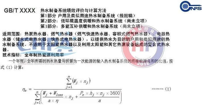 經(jīng)過了多次征求意見,目前團(tuán)體標(biāo)準(zhǔn)已經(jīng)形成了送審稿,標(biāo)準(zhǔn)的名稱是T/CECA XXXX-XXXX《家用和類似用途熱水器能效測(cè)試計(jì)算方法》,適用范圍包括熱泵熱水器、燃?xì)鉄崴?燃?xì)饪焖贌崴鳌⑷莘e式燃?xì)鉄崴?、電器熱水器(儲(chǔ)水式電熱水器、快熱式電熱水器),以提供熱水為目的的戶用和類似用途的熱水制備系統(tǒng)。由于太陽能熱水器測(cè)試方法的復(fù)雜性,暫時(shí)不適用于太陽能熱水器以及利用太陽能和其它熱源設(shè)備組成的復(fù)合式熱水器。
