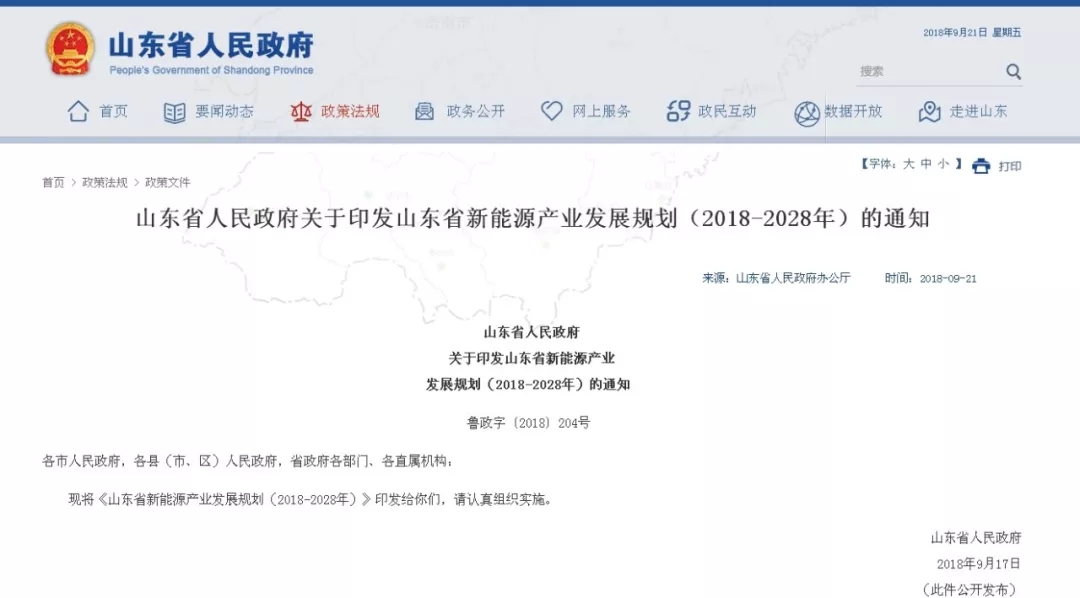 2018年9月21日,山東省人民政府發(fā)布《山東省新能源產(chǎn)業(yè)發(fā)展規(guī)劃(2018-2028年)》,指出新能源產(chǎn)業(yè)規(guī)模不斷壯大。到2022年,山東省新能源產(chǎn)業(yè)總產(chǎn)值力爭(zhēng)達(dá)到7000億元,產(chǎn)業(yè)增加值力爭(zhēng)達(dá)到2400億元。到2028年,新能源產(chǎn)業(yè)總產(chǎn)值、增加值力爭(zhēng)分別達(dá)到12000億元和4000億元,成為山東省新的重要支柱產(chǎn)業(yè)。