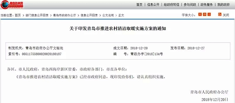 關(guān)于印發(fā)青島市推進(jìn)農(nóng)村清潔取暖實施方案的通知