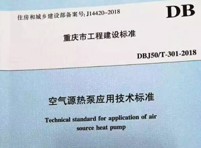 2019年1月1日,經重慶市城鄉建設委員會批準,重慶市工程建設推薦性標準《空氣源熱泵應用技術標準》開始實施。該標準于2018年9月29日發布,標準編號為DBJ50/T-301-2018,住房和城鄉建設部備案號為J14420—2018。